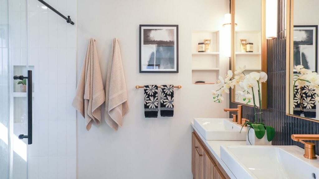 Mirrors aren’t just functional, they are powerful tools in home staging, especially when it comes to small bathrooms. A well-placed mirror can completely transform a tiny, cramped space by reflecting light and giving the illusion of extra square footage. The reflective surface bounces light around the room, making it appear brighter and airier. This is especially important in small bathrooms, where natural light can be limited, and the goal is to create a sense of openness.